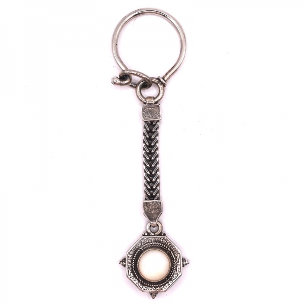Μπρελόκ ασημένιο 925,είναι με αλυσίδα αντικέ και σκάλισμα που στο τέλος έχει μοτίφ και μια πέτρα φίλντισι σε λουστρέ φινίρισμα.Υπέροχο δώρο για τους αγαπημένους σας.
