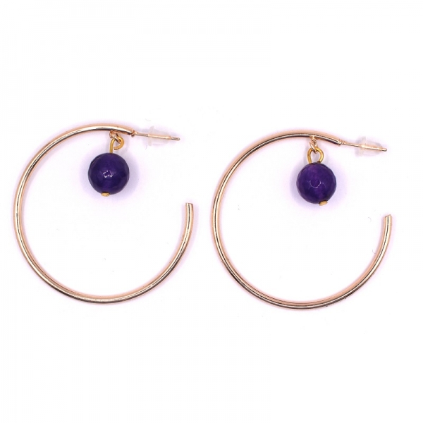Hoops studded in gold color, hanging an amethyst stone. Beautiful gift for you and your friends.