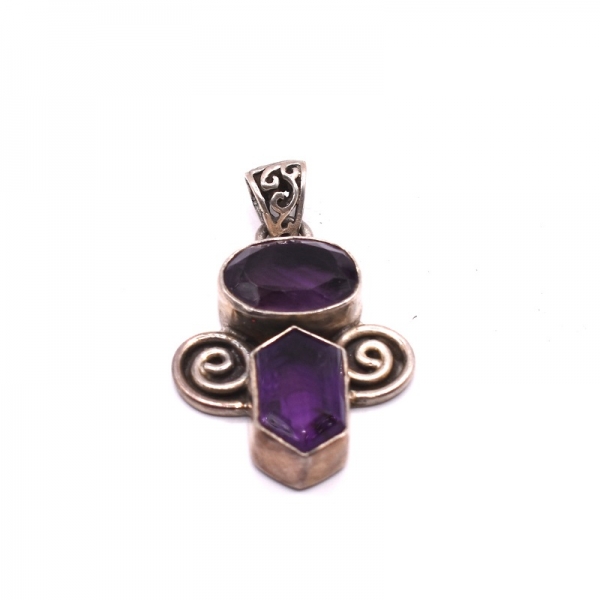 925 silver pendant handmade with amethyst tied with suede has a polished finish. The amethyst stone symbolizes offering, rebirth, peace and tranquility.