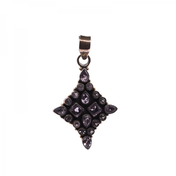 925 silver pendant handmade with amethyst tied with suede has a polished finish. The amethyst stone symbolizes offering, rebirth, peace and tranquility.