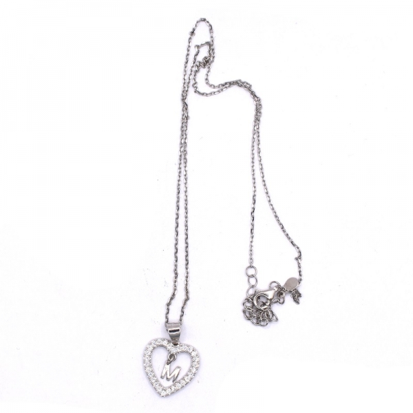 Pendant silver 925 monogram "M" is inside a heart and surrounded by zircons. It is a beautiful pendant to wear every day. The length of the chain is 45 cm.