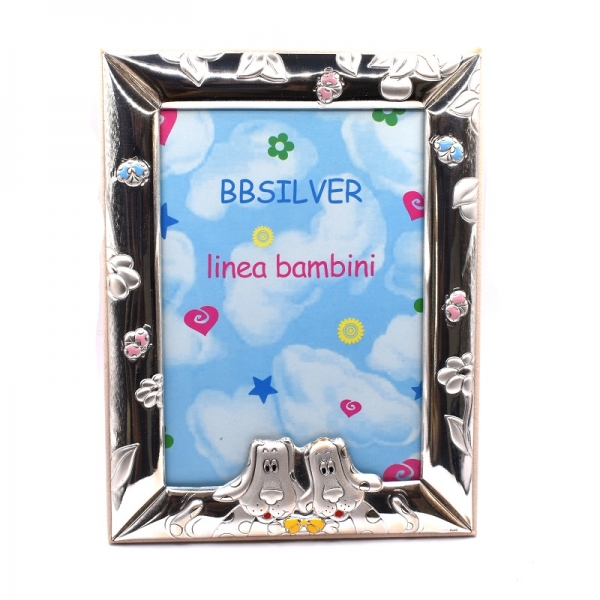 Κορνίζα ασημένια παιδική για κοριτσάκι σε χρώμα ροζ,είναι ματ και λουστρέ φινίρσμα πάνω έχει δύο σκυλάκια το πίσω μέρος της κορνίζας είναι με βελούδο ροζ.Η κορνίζα είναι Υ:16.0 cm x Π: 12.5 cm η διάσταση της φωτογραφίας είναι Π:9.0 cm x Υ:13.0 cm